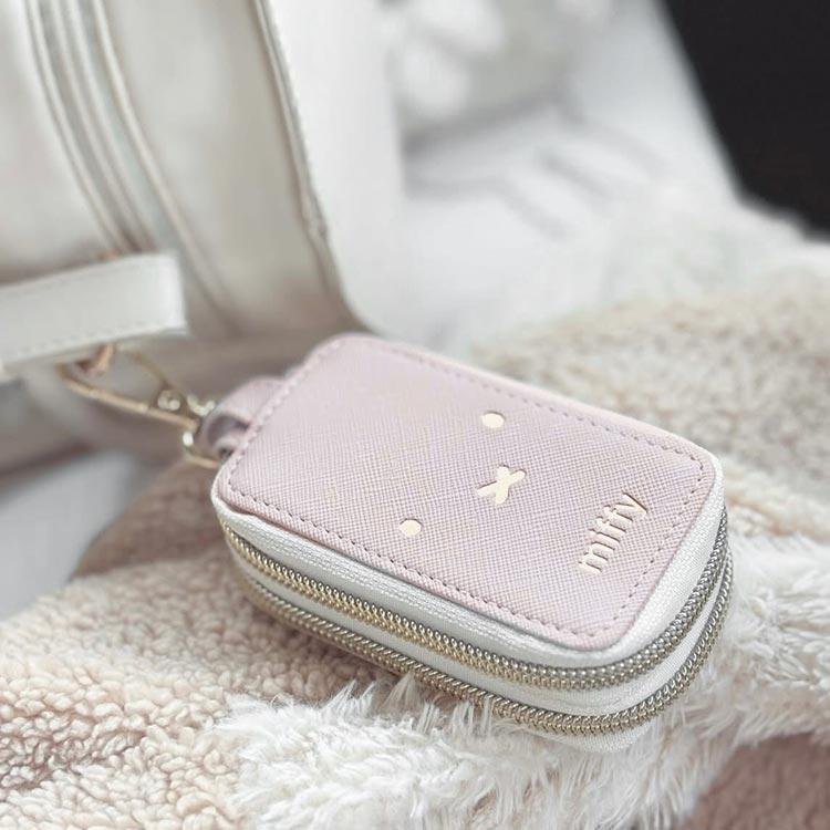 大人系可愛的 Miffy 設計智能鑰匙包,外型小巧卻擁有充足收納空間。內部為雙隔層設計,可同時收納汽車智能鑰匙與家用鑰匙,分類清楚不混亂。正面附有透明視窗,無需取出即可操作智能鑰匙。