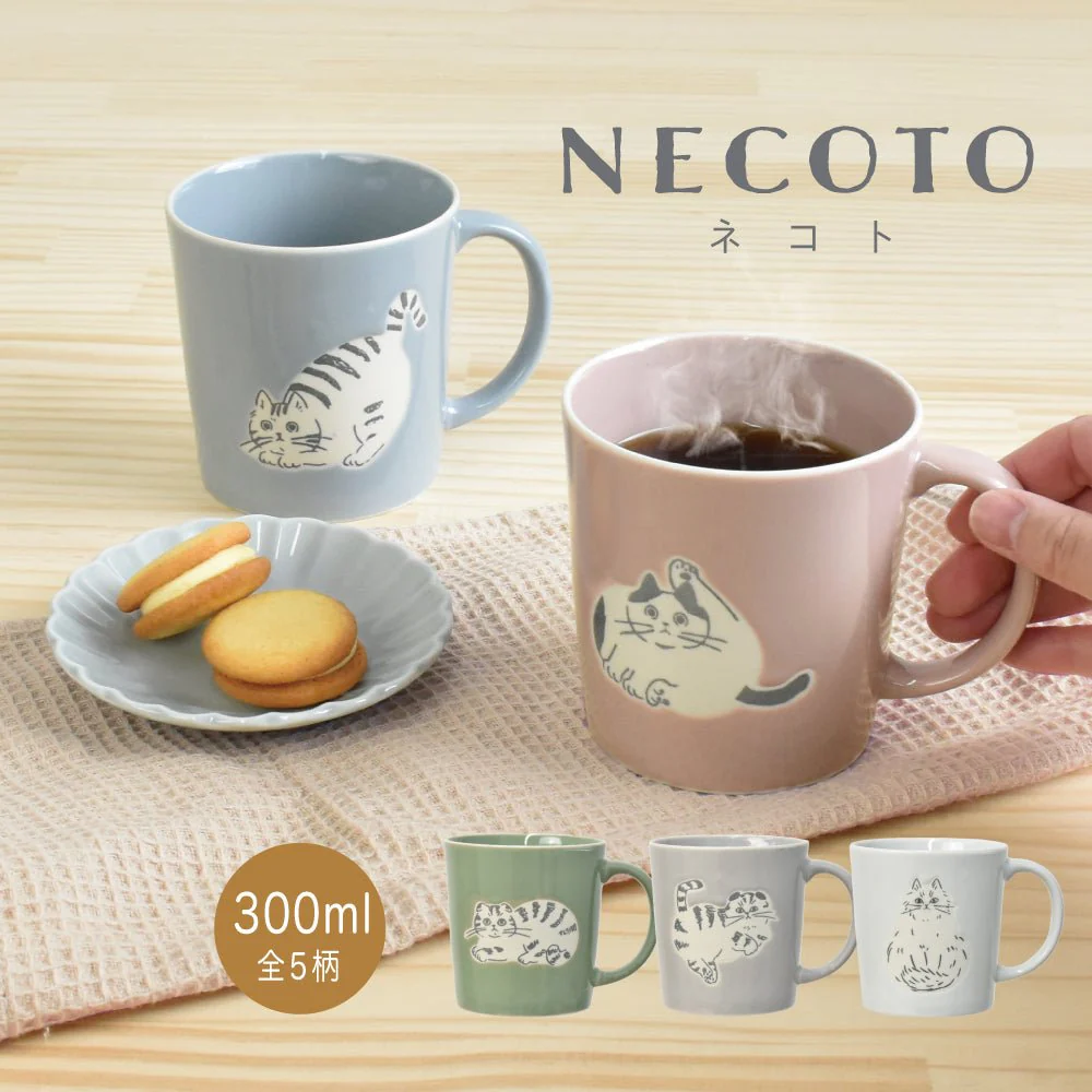 Necoto 貓貓陶瓷杯 – 藍色|粉紅色|綠色|灰色|米灰白